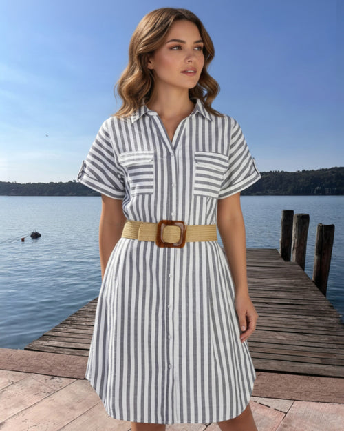 💚🤍🩷 Florales Viskosekleid „Riviera“ – mit Seitennahttaschen Leichtes Halbarmkleid
