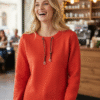 Dieses stilvolle Damen Sweatshirt ist ein echter Hingucker. Der Rundhalsausschnitt wird durch dekorative Ösen und einen zweifarbigen Kordelzug betont, was dem Sweatshirt einen sportlichen Touch verleiht. Die angesagte Waffeloptik sorgt nicht nur für eine interessante Textur, sondern verleiht dem Pullover auch eine edle Note. Der weiche Materialmix aus Polyester, Viskose und Elasthan bietet angenehmen Tragekomfort und sorgt für Flexibilität und Bewegungsfreiheit. Mit den langen Ärmeln und der lockeren Passform ist dieser Pullover perfekt für kühle Tage und lässt sich vielseitig kombinieren – ob für den Alltag oder die Freizeit.