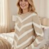 - Farbe: Beige mit weißen Chevron-Streifen