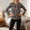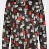 Dieses modische Damen Shirt besticht durch sein auffälliges grafisches Muster in Rot-, Beige- und Grautönen auf einem dunklen Hintergrund. Der klassische Rundhalsausschnitt und die langen Ärmel sorgen für einen zeitlosen Look, der sich perfekt in deine Freizeitgarderobe integrieren lässt. Der weiche Materialmix aus 72 % Polyester, 25 % Viskose und 3 % Elasthan sorgt für einen angenehmen Tragekomfort und bietet durch den leichten Stretch eine optimale Passform. Ein vielseitiges Oberteil, das sowohl zur Jeans als auch zu eleganten Stoffhosen getragen werden kann.