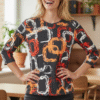 Dieses stilvolle Damen Shirt bringt Farbe in deinen Kleiderschrank. Mit seinem lebhaften, abstrakten Muster in warmen Farbtönen zieht es garantiert Blicke auf sich. Der Rundhalsausschnitt und die 3/4 Ärmel machen es perfekt für die Übergangszeit oder als modischer Begleiter im Alltag. Dank des weichen Materialmixes aus Viskose, Polyester und Elasthan bietet das Shirt einen hohen Tragekomfort und eine angenehme Leichtigkeit. Es lässt sich vielseitig kombinieren und ist ideal für modische Freizeit-Looks.