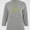 Dieses Sweatshirt ist ein echter Hingucker für jede Garderobe! Das moderne Grau wird durch den leuchtenden Schriftzug „Amazing“ in sonnigem Gelb und ein geometrisches Muster in glänzendem Silber stilvoll aufgewertet. Der hohe, lässige Funnel-Neck mit farblich abgestimmter, gelber Kordel sorgt nicht nur für warme Wohlfühlmomente, sondern rundet das Design sportlich ab. Die angesagten 3/4-Ärmel bieten Bewegungsfreiheit und machen das Sweatshirt zum idealen Begleiter für entspannte Freizeit-Outfits. Ob zu Jeans oder Leggings – mit diesem Sweatshirt setzt du ein modisches Statement!