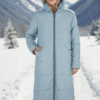 Setzen Sie auf maximalen Komfort und modernen Stil mit diesem eleganten Steppmantel in sanftem Eisblau. Gefertigt aus hochwertigem, glattem Polyester-Material, schützt Sie dieser Mantel zuverlässig vor Wind und Kälte. Die abnehmbare Kapuze ist mit weichem Teddypelz gefüttert und sorgt so für extra Wärme und ein besonders angenehmes Tragegefühl. Ein praktischer 2-Wege-Reißverschluss ermöglicht flexibles Öffnen und Schließen, während die seitlichen Taschen mit Reißverschluss Ihre Essentials sicher verwahren. Eine integrierte Handytasche rundet das funktionale Design ab. Der gerade Schnitt mit langer Silhouette bietet optimalen Schutz und schmeichelt jeder Figur – ein Must-have für die kalte Jahreszeit!