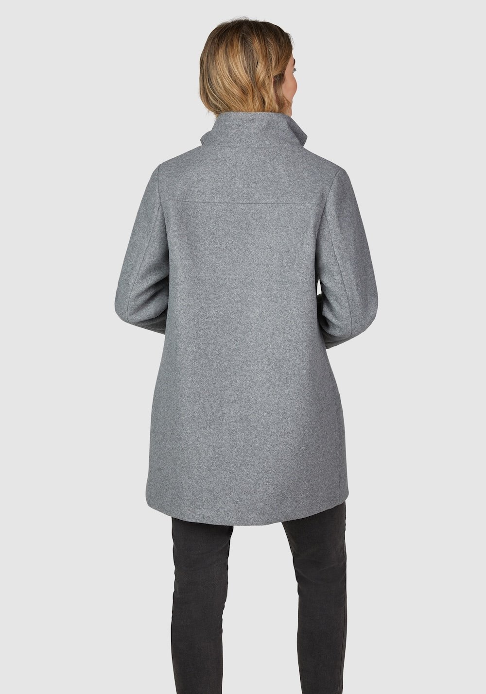 – Moderner Damenmantel in eleganter Kochwolloptik (Grau)