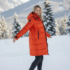 Dieser leuchtend rostfarbige Wintermantel kombiniert Funktionalität und Mode auf perfekte Weise. Er verfügt über eine isolierte Füllung, die Sie auch bei den kältesten Temperaturen warm hält. Der Mantel erstreckt sich bis zur Mitte der Oberschenkel und bietet somit optimalen Schutz und Wärme. Mit einem praktischen Reißverschluss vorne und einer fest angebrachten Kapuze sind Sie bestens für windige und verschneite Tage ausgerüstet. Schwarze Akzente an der Kapuze und den Bündchen setzen stilvolle Kontraste und verleihen dem Mantel eine moderne Note.