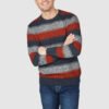 Setze stilvolle Akzente mit diesem Strickpullover, der durch ein harmonisch abgestimmtes Streifenmuster in Navy, Rostorange und Grau besticht. Der Pullover verfügt über einen klassischen Rundhalsausschnitt und lange Ärmel, die für ein angenehmes Tragegefühl sorgen. Dank des hochwertigen Strickmaterials bietet er optimalen Komfort und hält auch an kühleren Tagen wunderbar warm. Ob für das Büro, den Stadtbummel oder einen entspannten Abend – dieser Pullover ist ein vielseitiger Begleiter, der jedes Outfit aufwertet.